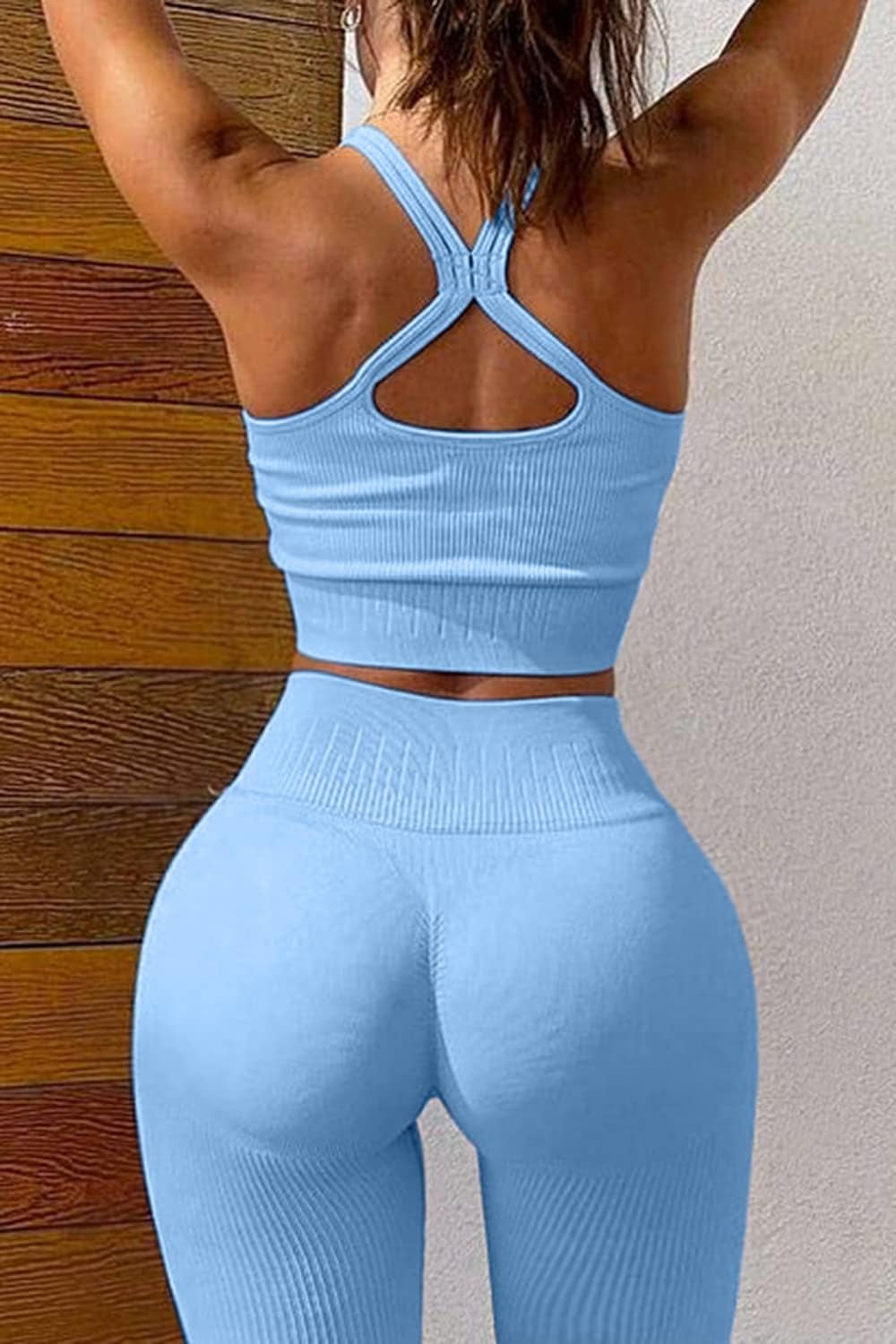 knit ribbed material has strong sweat absorption capacity,Let your skin get rid of stickiness,It provides lightweight comfort along with sweat absorption,reducing stickiness when sweating, keeping you dry and non-sticky during exercise, and enjoy the joy of yoga and exercise.